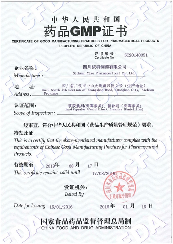 2000年1月,公司通过了国家食品药品监督管理局认证评审中心组织的现场评审检查,取得了公司第一张GMP证书。 其后,公司先后多次投入资金,改建了质管部、综合车间、中药前提车间、口服固体制剂车间等;添置了大量检验和生产设备,进行了多次GMP认证。并且分别于2005年、2010年、2015年通过了GMP重新认证。